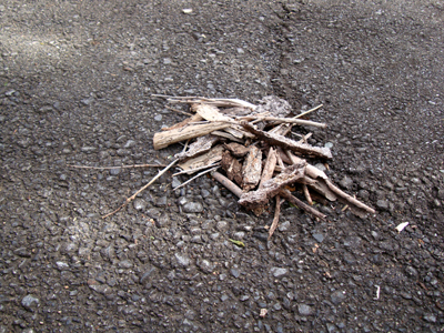 落ちていた枝や木の皮が自然に集められてきたようです。