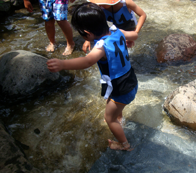 ようやく水の中に手をいれ、鮎に触ることができました。