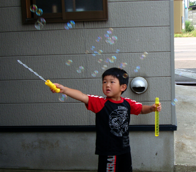 写真のシャボン玉は、細長いスティクのようなタイプで、