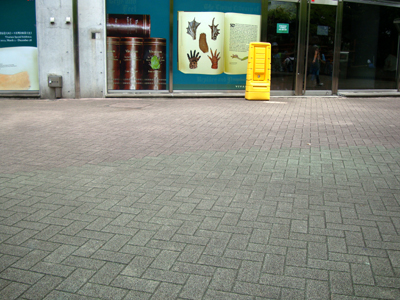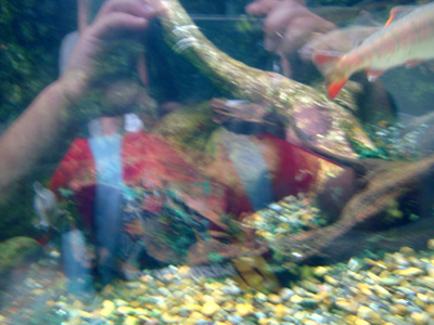 水槽の魚を撮ろうとして、自分の姿が映っています。