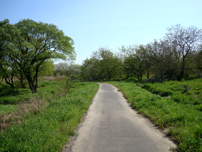 車が一台通れる位の道幅ですが、管理用の道路という事で、車は進入していけません。